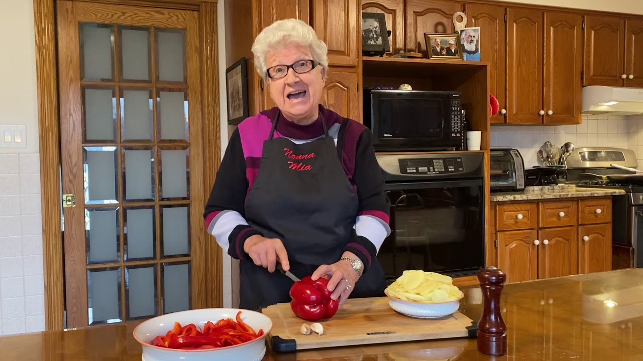 In this episode, Nonna uses 2 kg of potatoes and 2 kg of red peppers. You are welcome to use mixed colors, but Nonna has always kept to red peppers.