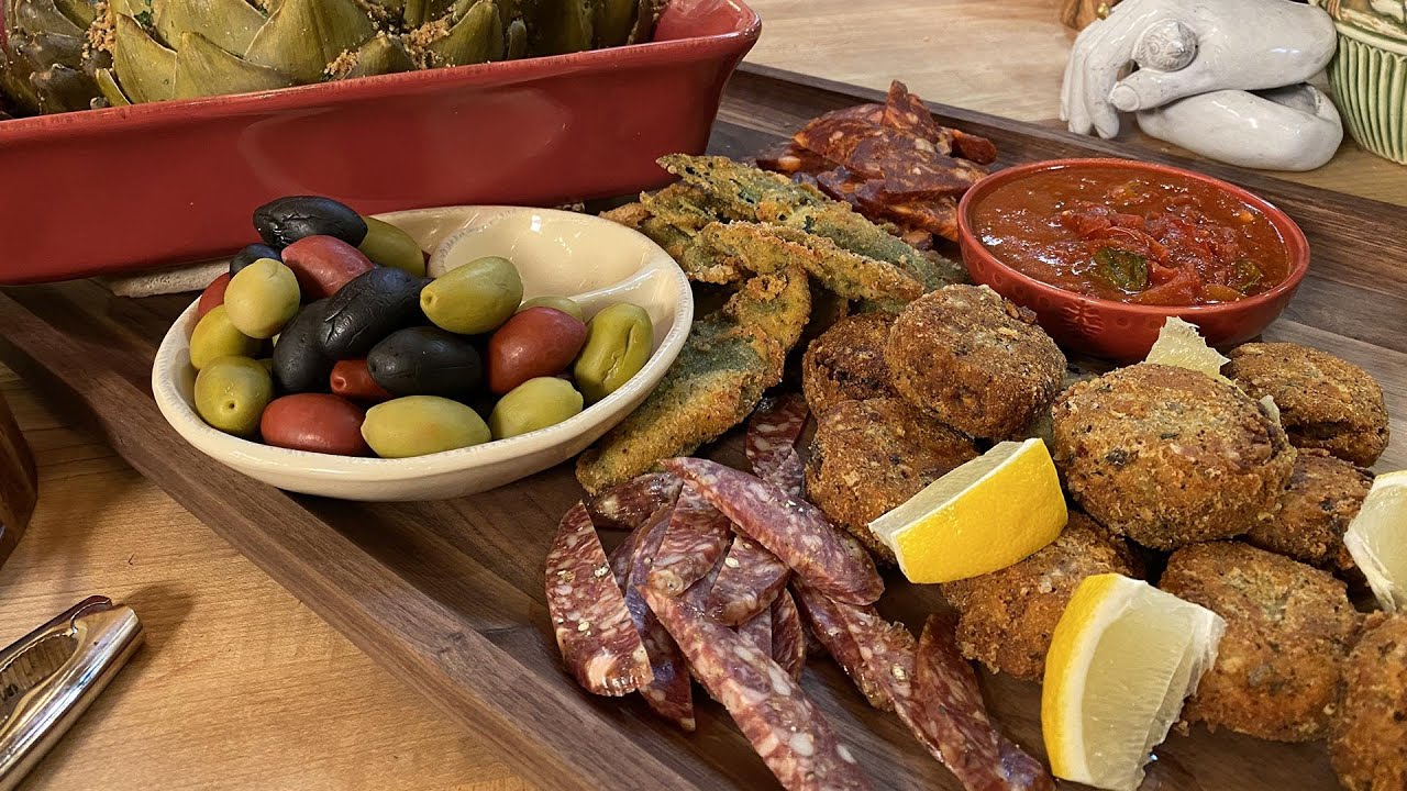 Watch Rach make eggplant croquettes and fried stuffed sage leaves for her New Year’s Holiday Snack Night. Appetizersat homeCanapésCicchettiCocktail PartycookingCroquettescuisineeggplantFaveFoodfriedHomehors doeuvreshow toitalianItalian Cookingitalian cuisineItalyItaly CookingItaly CuisineleavesNew Year's Evenew yearsNYEparty foodRachrachael rayrachael ray showrachaelrayrachel rayrecipeSagesharessmall bitessnacksStuffedvideoVlogYear39sYouTube