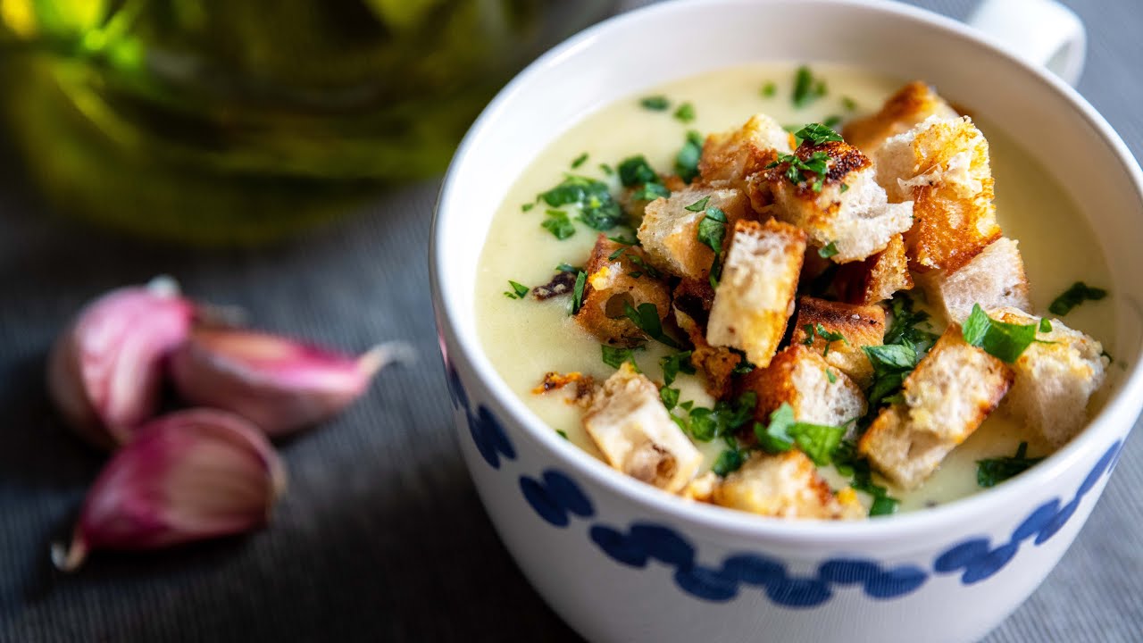 Nothing beats comfort food when it’s cold outside. I think this garlic soup is especially great for this time and it will make you feel cosy and warm. When my wife and I were in Italy, we tried this dish in different places, and we loved it!