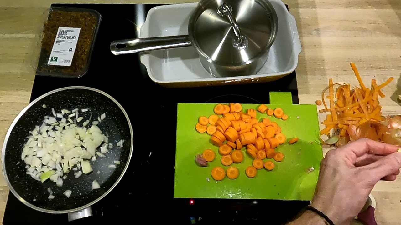 let the onion and garlic fry until they sweat throw in the carrots and the minced meat let them fry 2 minutes add chopped tomatoes and tomato juice or tomato sauce (about 700ml altogether) let it cook