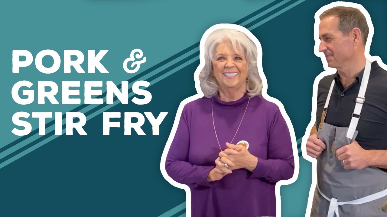 Love & Best Dishes: Pork & Greens Stir Fry Recipe – For the next few days, Bobby is joinin’ Paula to share some healthy recipes to keep them on track for healthy eating goals, and today’s dish is delicious—a Pork & Greens Stir-Fry!