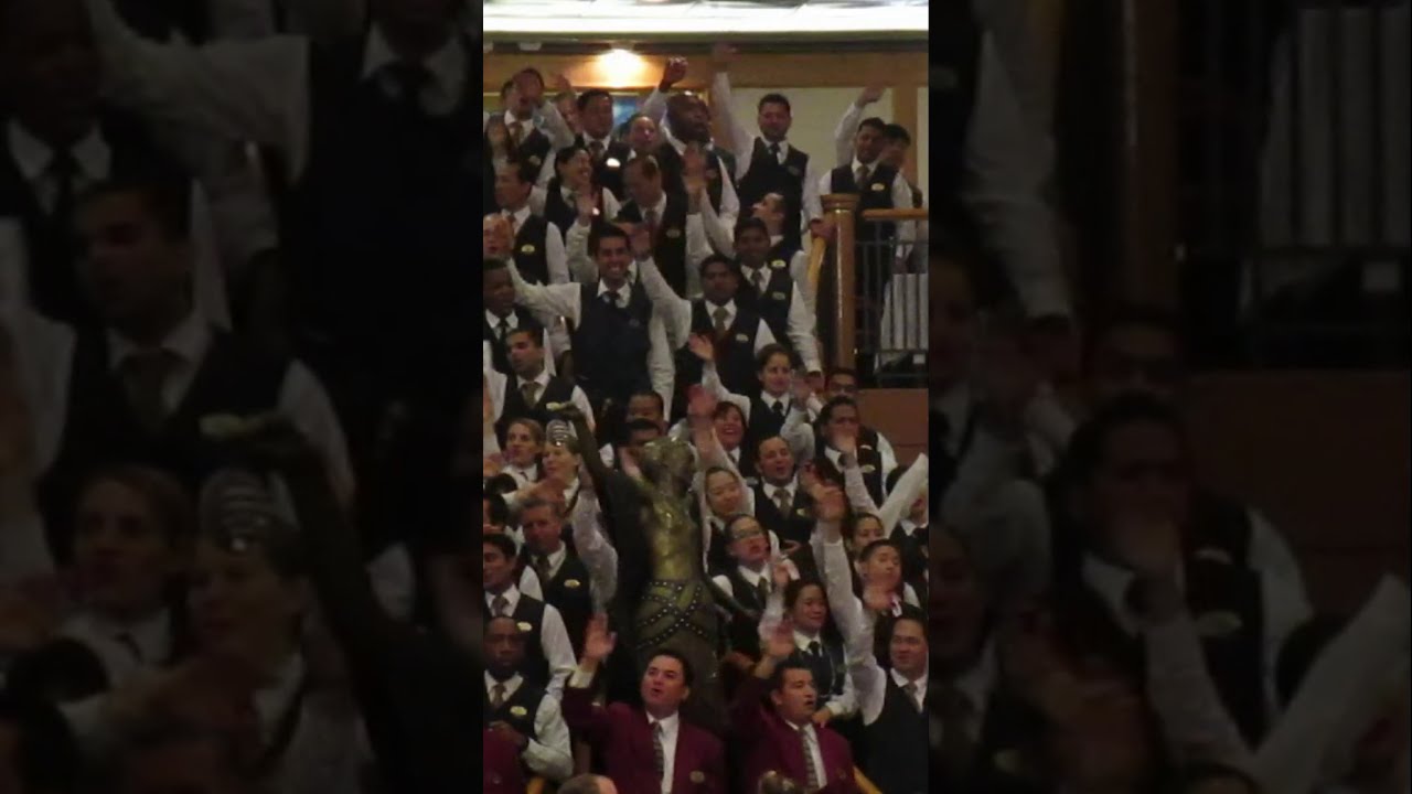 This footage was taken several years ago during our cruise onboard of Royal Caribbean’s Grandeur of the Seas to Bermuda and the Bahamas. One evening, during dinner in the main dining room, the dining room staff all gathered at the steps of the dining room and sang us some songs, one of which was the famous Italian opera song ‘O Sole Mio’.