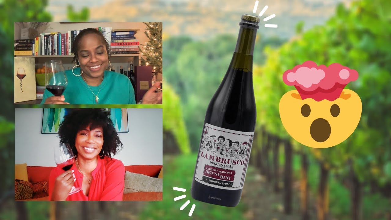 Wine tasting the amazing sparkling red Denny Bini dell Emilia Lambrusco from Emilia-Romagna.