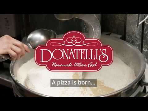 The life of a Donatelli’s pizza begins in the mixer. Every day we hand mix, knead and toss each pie. From here, the pizza begins to develop character, as we add layer upon layer of handmade pizza sauce and delicious meats and veggies, cheese, and more cheese. Somehow, it all comes together in the oven. We don’t know how – it’s hot in there!