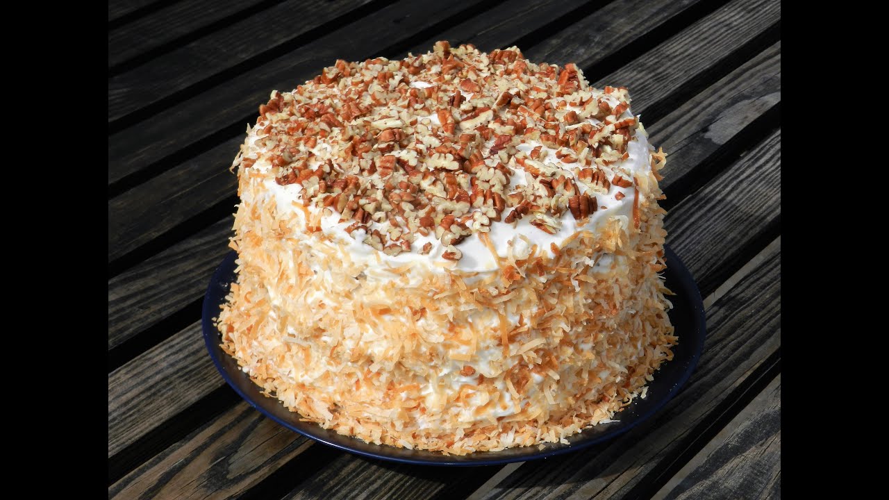 This cake is a real eye-catcher. This has everything that you need packed into one super simple but very simple and beautiful cake that is sure to make you proud at your next gathering, or for enjoy with a cup of Sunday morning coffee. Nutty with coconut and cream cheese, what more could you ask for.