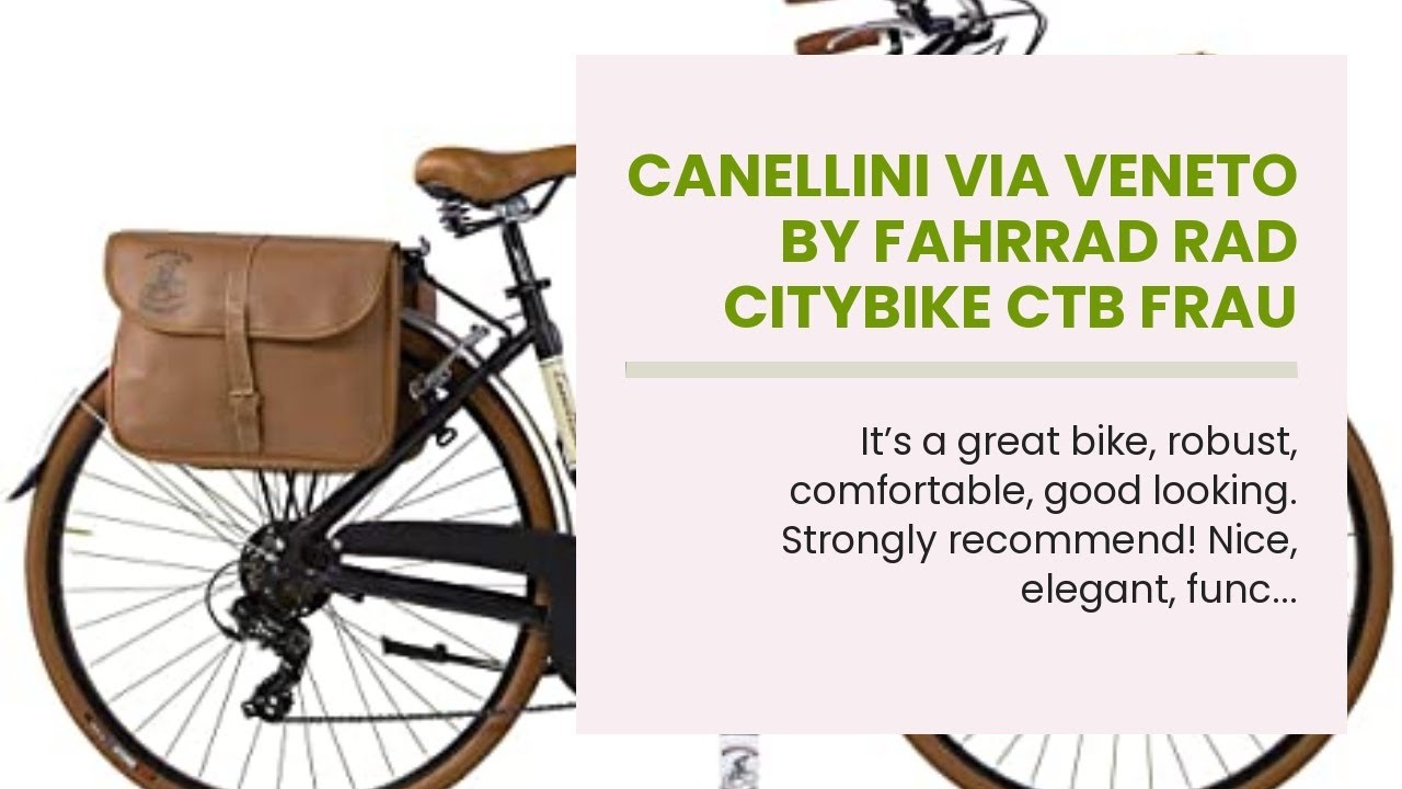 Canellini Via Veneto by Fahrrad Rad Citybike CTB Frau Vintage Retro Dolce Vita Aluminium Schwarz Black matt Souhaitez-vous des livres audio gratuits? Abonnez-vous maintenant: It’s a great bike, robust, comfortable, good looking. Strongly recommend!