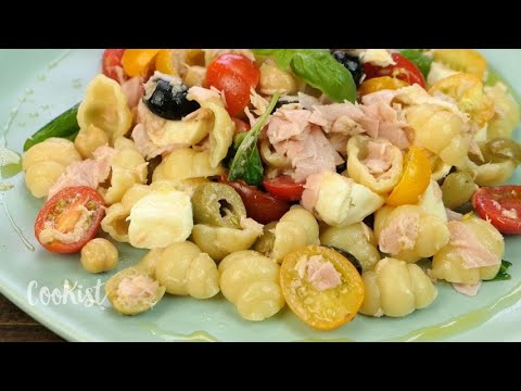 1. Cook pasta according to package directions, in salted water for more flavor. Allow to cool slightly and toss with a little oil to prevent sticking.2. Toss all ingredients together! Add the pasta to the salad.3. Keep in the fridge for 30 minutes and serve.