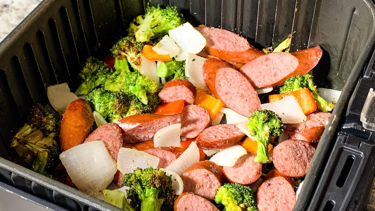 Turkey Italian Smoked Sausage, broccoli, onions and bell peppers seasoned with olive oil, garlic, Italian seasoning and roasted to perfection using 5.8 QT Air Fryer. This quick 15-minutes meal or less is a low-carb, healthy and packed full of flavor dinner option that is also great for meal-prep too. This is budget friendly recipe that everyone should be able to afford and make at home.