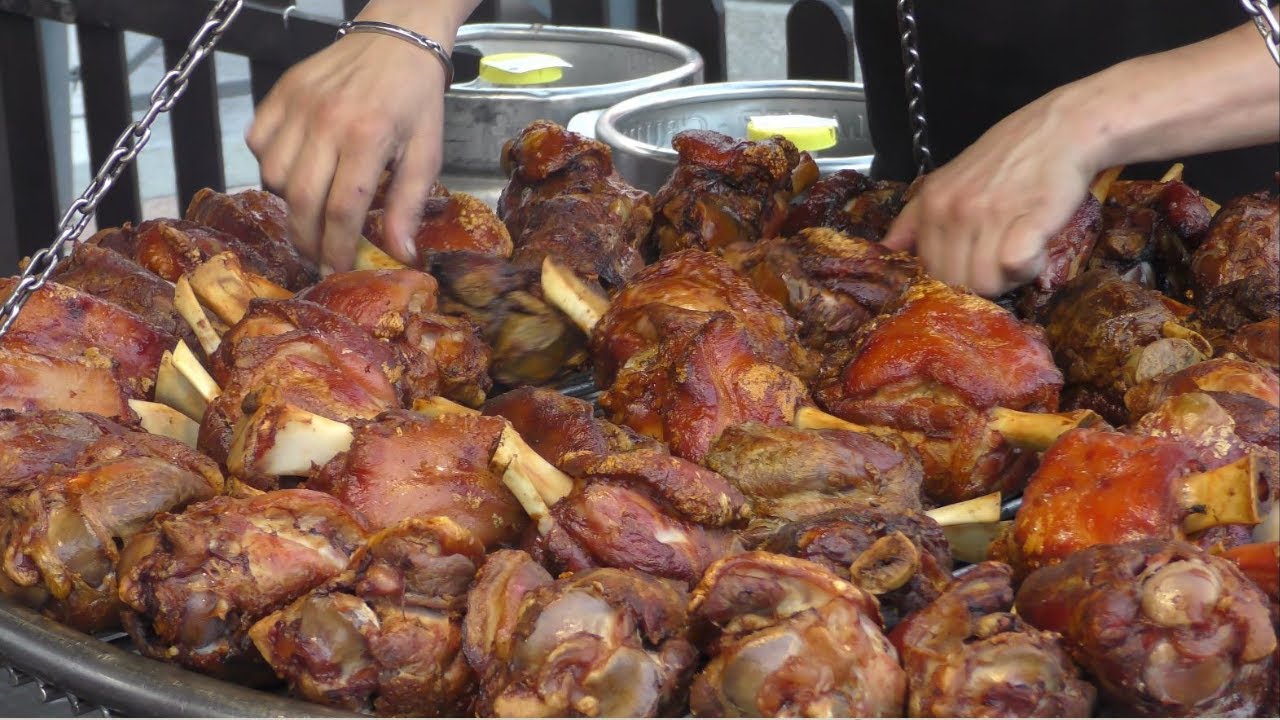 Big Dose of Pork Legs on Huge Grills. Germany Street Food