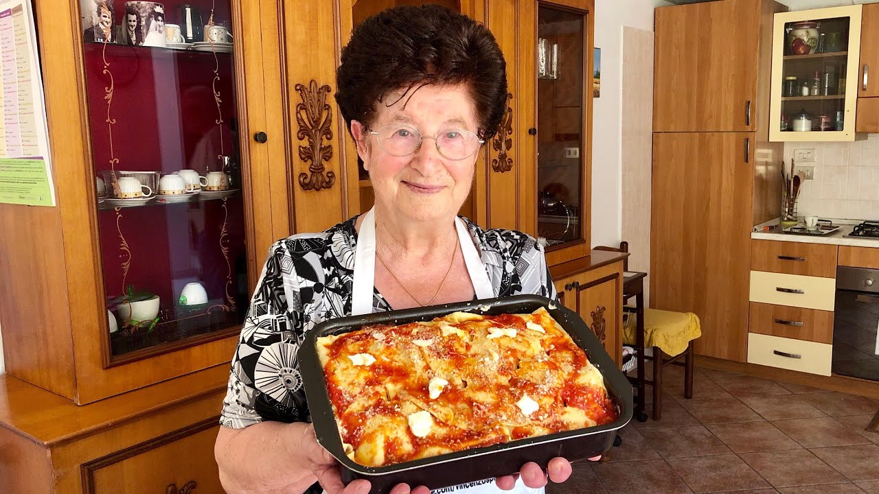 This week we have borrowed Nonna Igea from another YouTube channel, Vincenzo’s Plate – go check him out! She shares her recipe for a crepe layered lasagna called a timballo. And it’s delicious – it’s flavourful, oozy and not heavy on the tummy at all. Vincenzo has already written up the recipe: