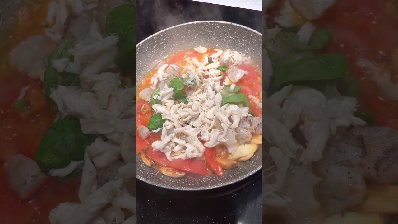 In a large pan, over medium heat, saute garlic in the oil. After it browns lightly, add tomatoes. Saute and then add water to the sauce. Cook at a fast boil to reduce slightly. Add the spices and the mushrooms. In a separate pot of boiling water, add a pinch of salt and capellini. Cook for about 4 minutes – it will be about halfway done. Strain capellini and add to the sauce with the arugula and sun-dried tomatoes. Let it cook