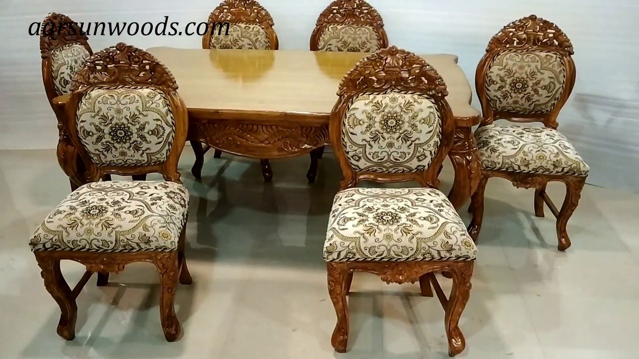 Aarsun presents to you handcrafted 6 Seater Wooden dining set made from premium quality Teak wood by skilled artisans. A transitional style dining set that features dining table, and six chairs with Beautiful fabric. It is finished in polish for a dazzling appeal. The dining chairs look beautiful and make this dining set unique. The dining room set features a really attractive design. its a beautiful addition to dining room area.