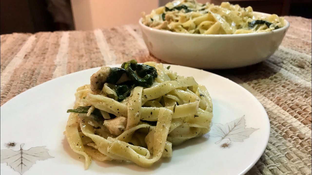 INGREDIENTS ARE:1 lb fettuccine pasta 1 lb chicken breast strips 2lb spinach 1 1/2 tbsp butter 1 tsp salt 1 tsp black pepper 2 tbsp garlic minced 1/2 cup cream I hope you will enjoy it. alfredocookcookingCreamycreamy pasta recipecuisineEasiestfettuccinefettuccine creamy pasta recipefettuccine recipeitalianItalian Cookingitalian cuisineItalian fettuccine recipeitalian foodItalyItaly CookingItaly CuisinePastavideoVlogYouTubeyummy pasta recipe