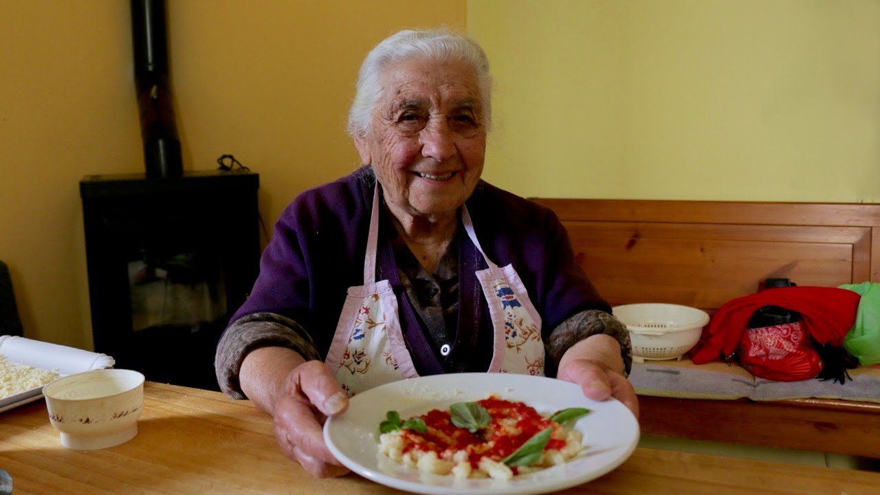 95 year old Giuseppa shows us how to make a Sardinian pasta speciality called macarrones de ungia – which are mini, knobbly versions of mallorreddus. They come from the town of Ozieri where Giuseppa has lived all her life. She continues to make pasta every day as well as cooking for her younger brother. Giuseppa, we salute you!