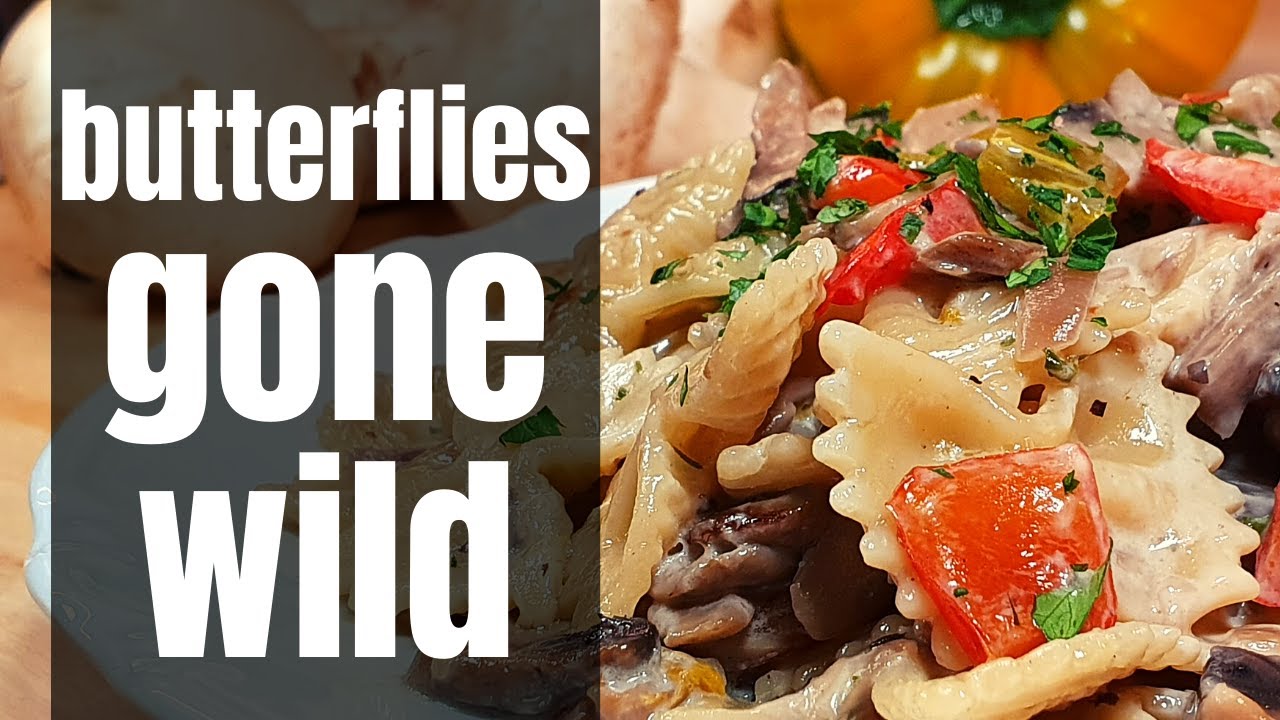 “Farfalle impazzite” in Italian literally means “butterflies gone wild” and the name comes from the peculiar shape of this type of pasta and (probably) the colorful look.