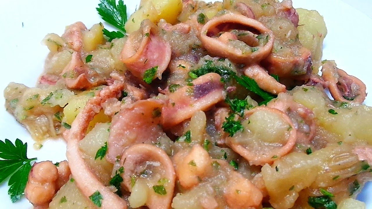 Squid with potatoes Italian Food Clean the squid, wash and cut into pieces, peel the potatoes and cut them into chunks …