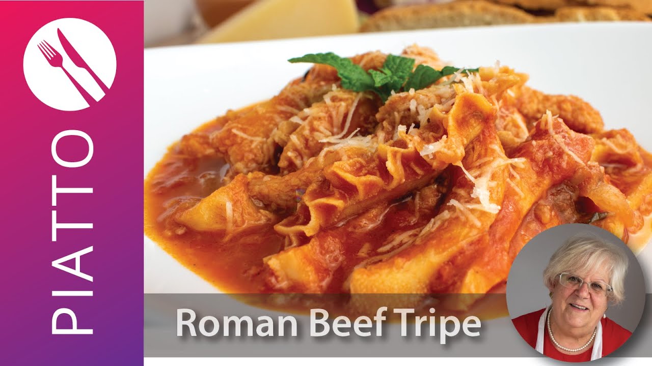 In this Piatto™ video recipe, we’ll learn how to cook beef tripe from an Italian Grandma. This Roman Style Tripe recipe (in Italian, “Trippa alla Romana”) uses beef tripe parts from all three edible stomachs of the cow.