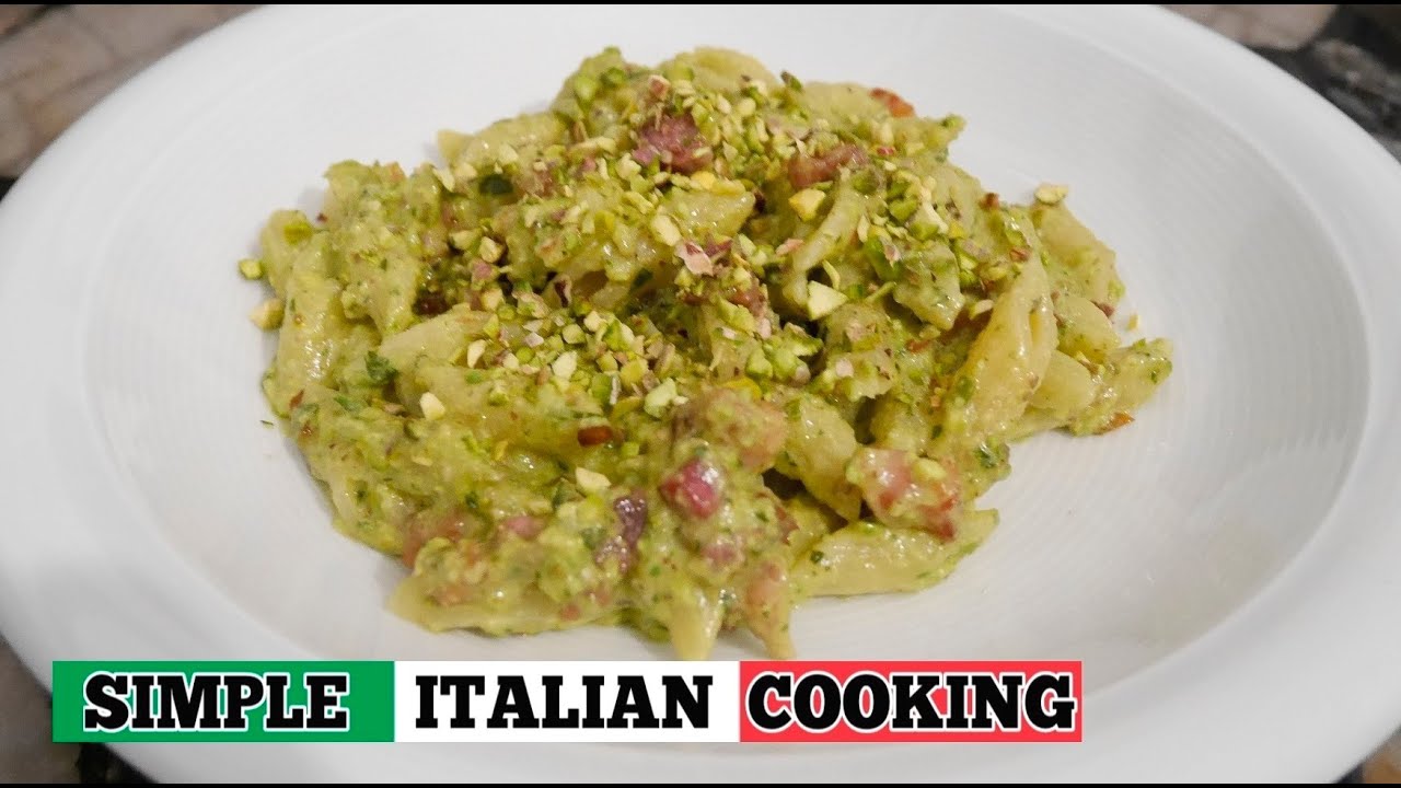 This is a very rich dish with a creamy pistachio sauce, enriched with fine smoked pork meat. It will meat any non-vegan taste. The preparation is exteremly simple and fast, and the cost is rather low. All you need is the right high quality ingredients.