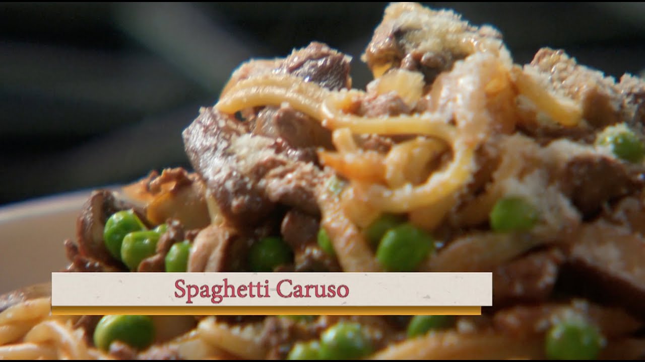 Spaghetti Caruso is named after the famous Italian opera singer, Enrico Caruso. It is made with San Marzano tomatoes, mushrooms, peas, onions, and an addition of chicken liver. Check out the recipe here Spaghetti Caruso – and watch me make it here! It makes ME want to sing! #centofinefood