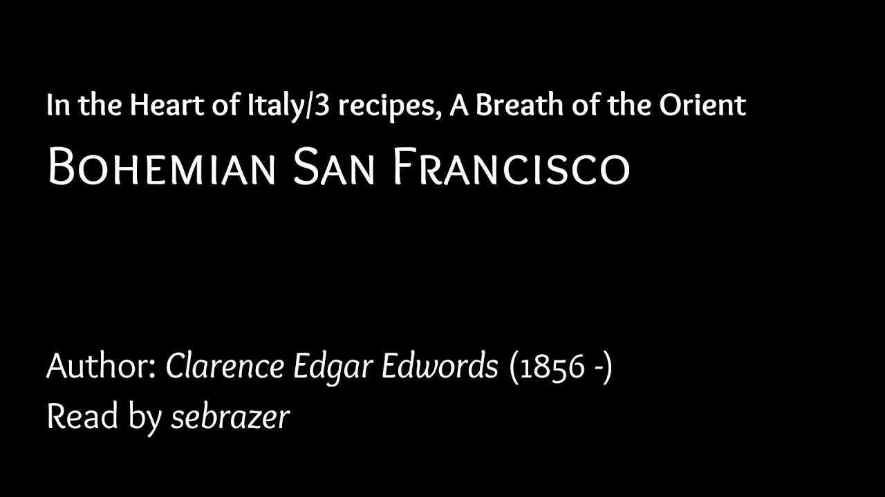 In the Heart of Italy/3 recipes, A Breath of the OrientBohemian San Francisco by Clarence Edgar Edwords (1856 -)Read by sebrazer Copyright: CC. Both the book and the audio are in the public domain. The audio is the records of Librivox. 1856 -AudiobookbohemianbookBreathClarence Edgar EdwordscookingebookFranciscoheartitalianItalian RecipesItalyItaly RecipesItaly3OrientreciperecipesSanvideoVlogYouTube