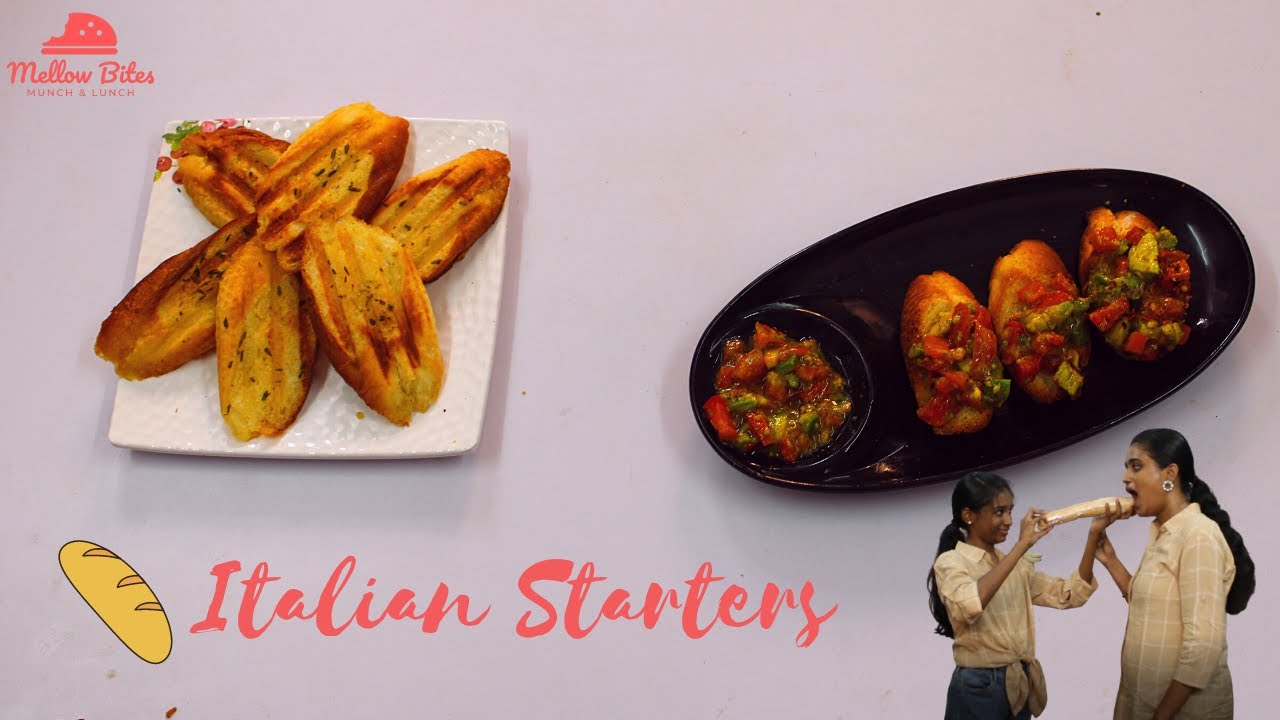 In this video we have shared two Italian appetizer recipes, grilled garlic bread and bruschetta using a French bread.