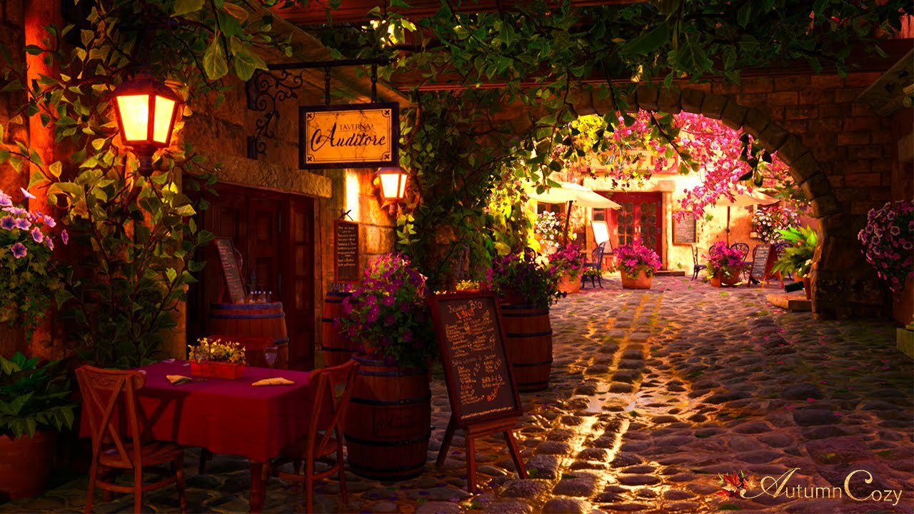 Some sounds you’ll hear in this video are: nature sounds, dishes clinking, wine being poured, peaceful chatter, walking on cobblestone, nature sounds, happy music and more!