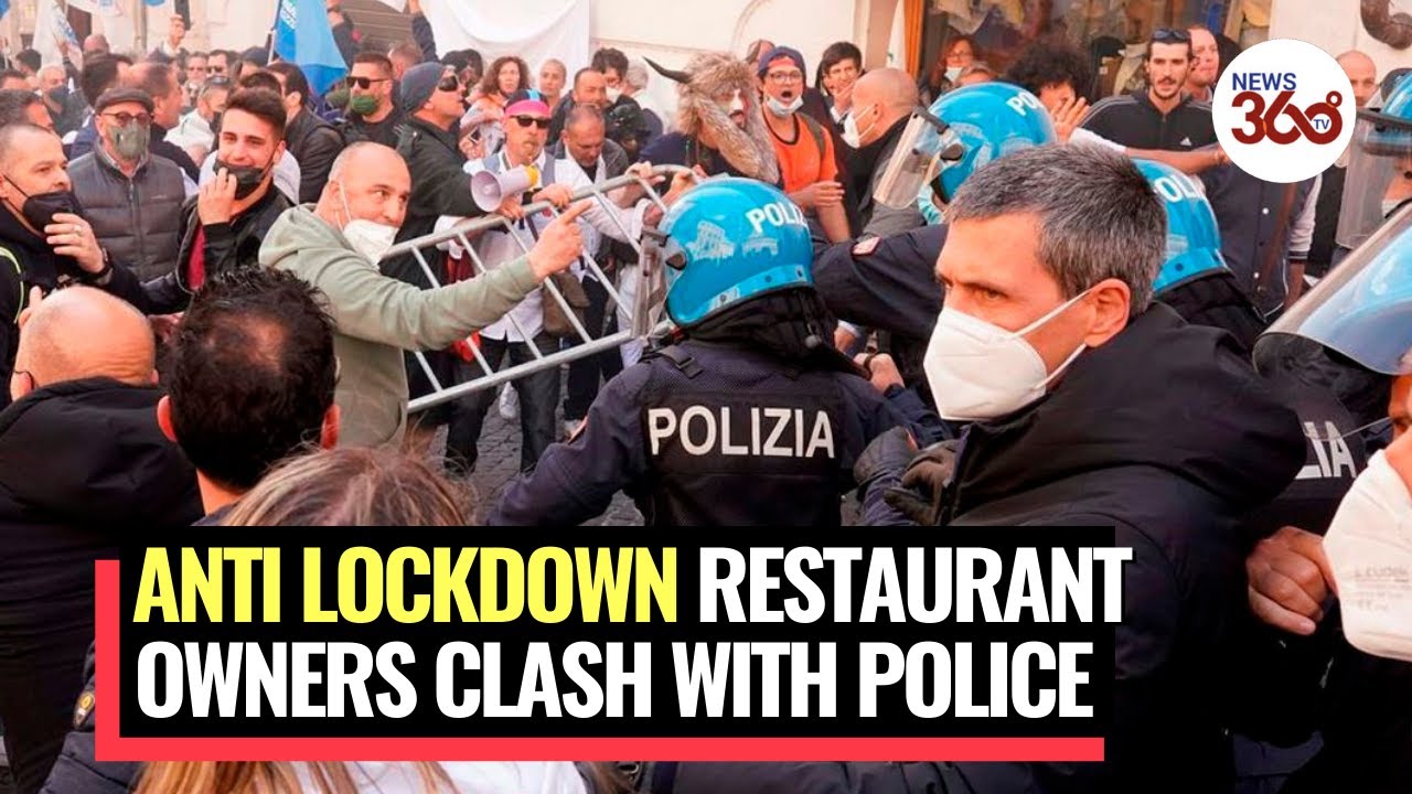 Italian restaurant owners and others angry at having their businesses shut for weeks due to a virus lockdown clashed with police on Tuesday during a protest outside Parliament in Rome.
