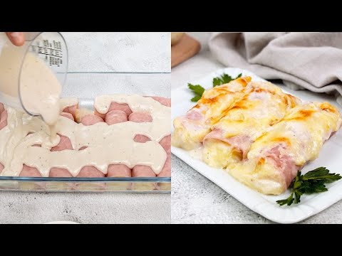 Place ham rolls into the baking pan and pour bechamel sauce on top. Add cheese on top and bake for 15 minutes at 190C/375F.