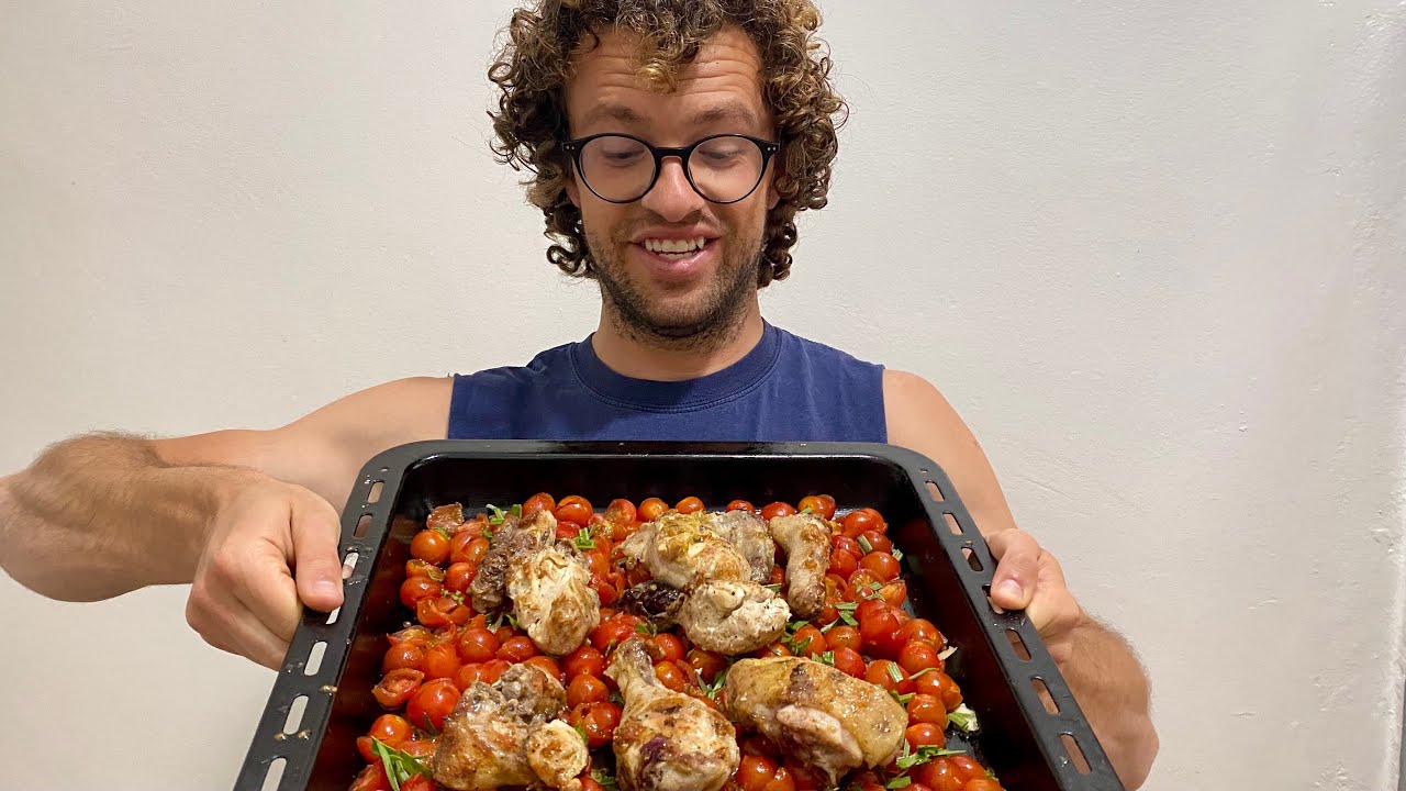 In the kitchen we cook chicken with a creamy cherry tomato chicken tarragon sauce. My cousin in Denver Colorado told me to take a picture of the chicken and vegetables I was going to cook, but I felt like a video exploration of our kitchen would be more fun. This was my first time cooking with tarragon. I found the taste subtle and fresh. Perhaps adding tarragon at the end could give it a stronger flavor. Tarragon is popular in French cuisine, but before this, I had not seen it in Moroccan cuisine It is the eve of Ramadan and we could only find vegetable cooking cream in lieu of full fat dairy cream. This Italian vegetable cream gave a nice consistency and thickness to the cherry tomato sauce. I debate on fasting for Ramadan.