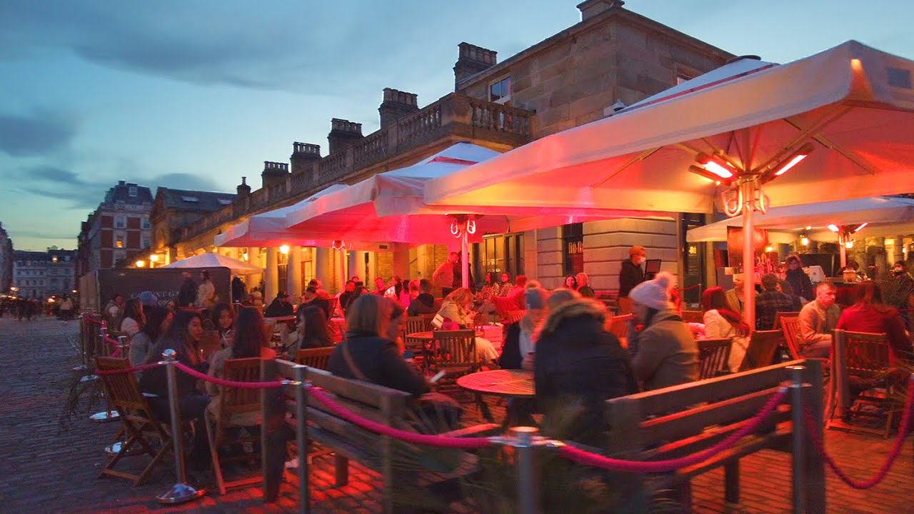 Walking London’s West End, from Covent Garden to Piccadilly Circus, on the first Saturday evening following the easing of hospitality restrictions, meaning pubs, restaurants, cafes and bars are allowed to host parties of up to six, or of two households, in outdoor spaces.