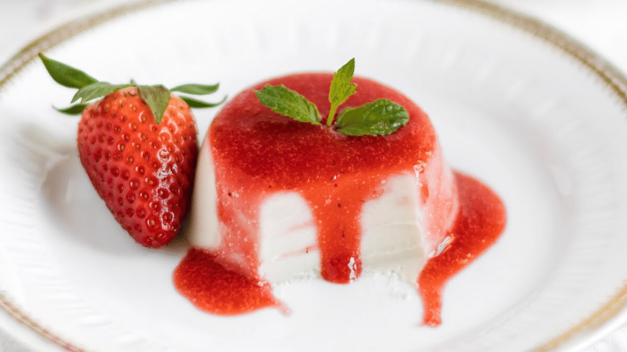 – We like to serve panna cotta with a bright red topping of strawberry syrup or raspberry syrup and some fresh berries on the side.