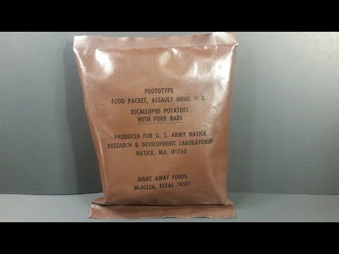 This Food Packet Assault is a lightweight restricted calorie 24 hour ration. Issued for up to 10 days in the field, it contains approx 1,550 calories and comes in 6 different menus. Used during non-resupply assault and recon missions where pack weight reduction and ease of eating on-the-go is a priority. Huge thank you to Jeff Hooper for making this one happen. He sent in 3 menus. Part 1 of 3 of a series.