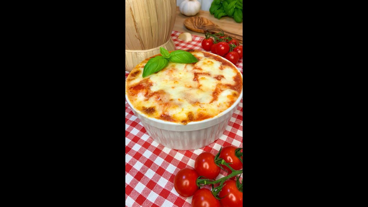 Pour your tomato gnocchi in a ovenproof dish, add some shredded mozzarella and grated Parmesan cheese. Repeat.