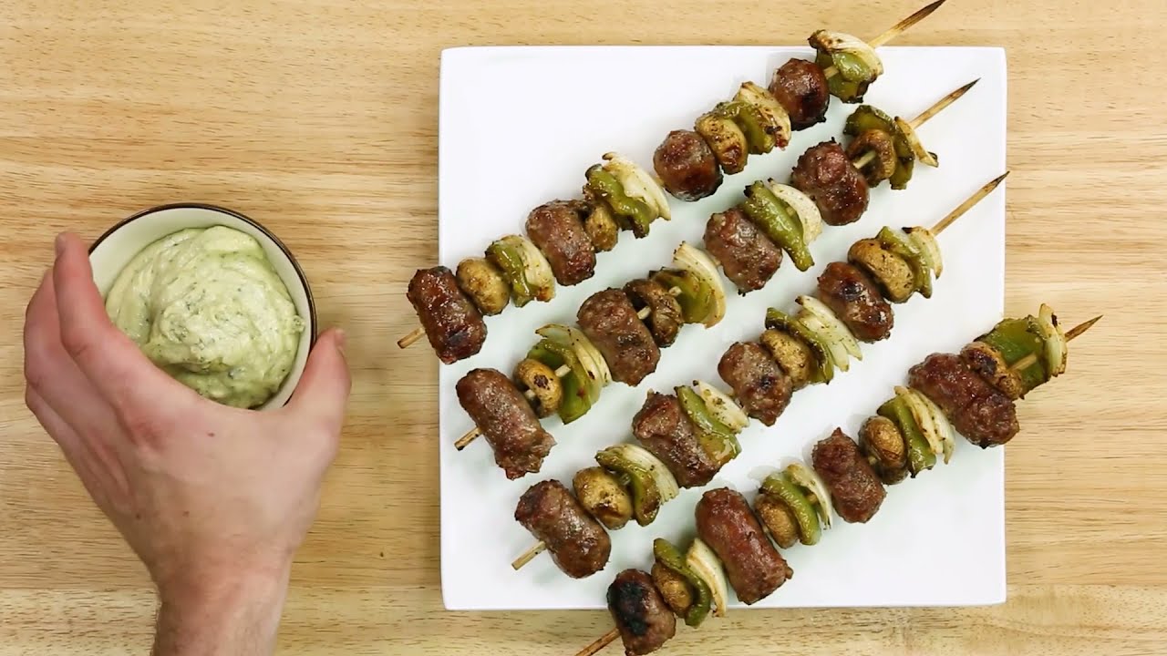 Looking for a new type of Italian sausage recipe? What about kabobs? We stack juicy chunks of Italian sausage marinated in Italian dressing on skewers with fresh green peppers, mushrooms and onions and toss them on the grill to bring the flavor Italian food to your next cookout.