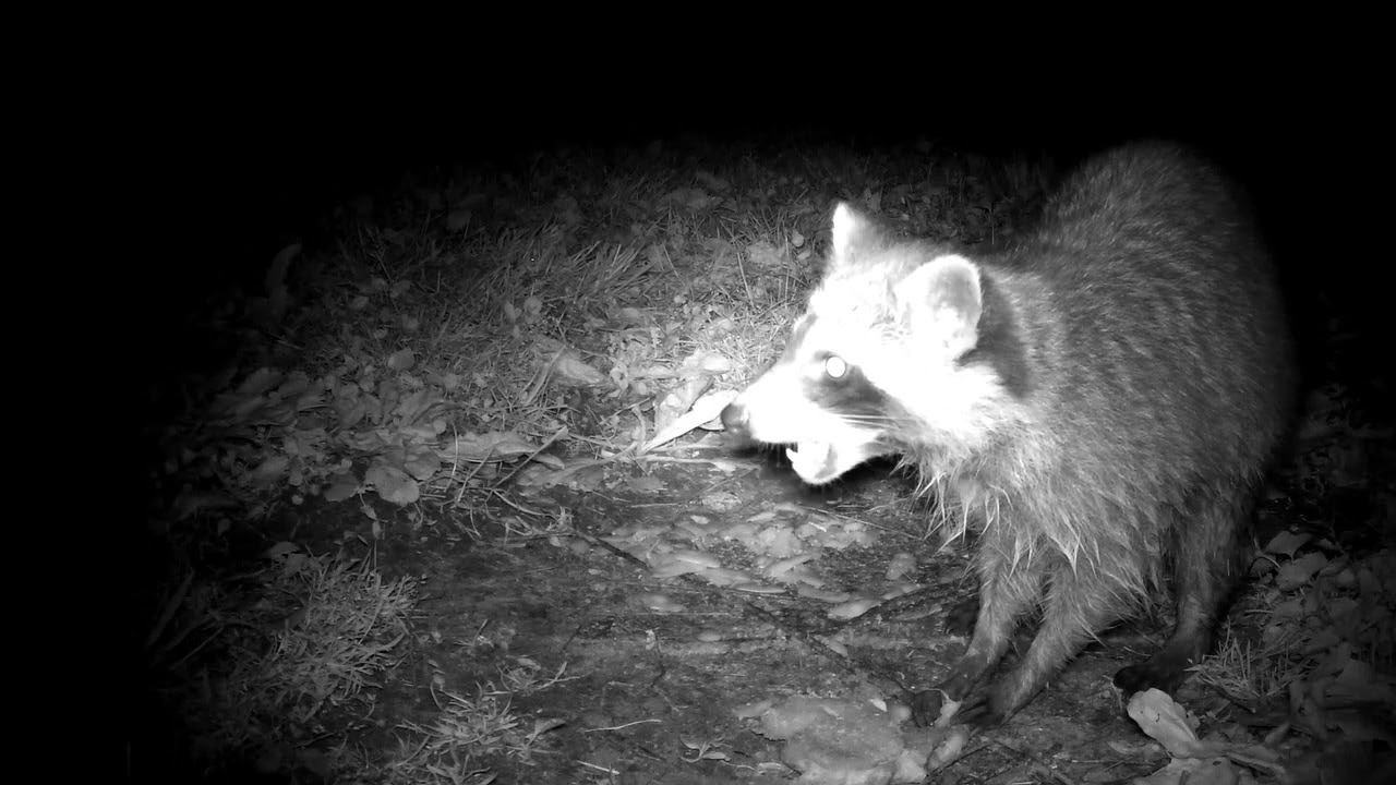 I took the leftovers from an abortive steak dinner down to the burn pile for Baby Coon and his mates to knosh on. There were ribeye steaks, a baked potato with Parmesan cheese and Italian style green beans. He really enjoyed himself. Make sure you stay till the end.