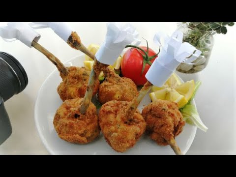 Place the chicken in the egg and then in the bread, 2 times, and create a round shape.