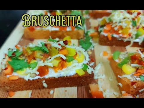 Bruschetta is an Italian appetizer, made of grilled bread ….. rubbed with Olive oil and garlic … and have used varieties of veggie like bell pepper, tomato, carrots, corn, cheese …….. and herbs and spices like coriander, oregano pepper, chilli flakes, etc etc …….