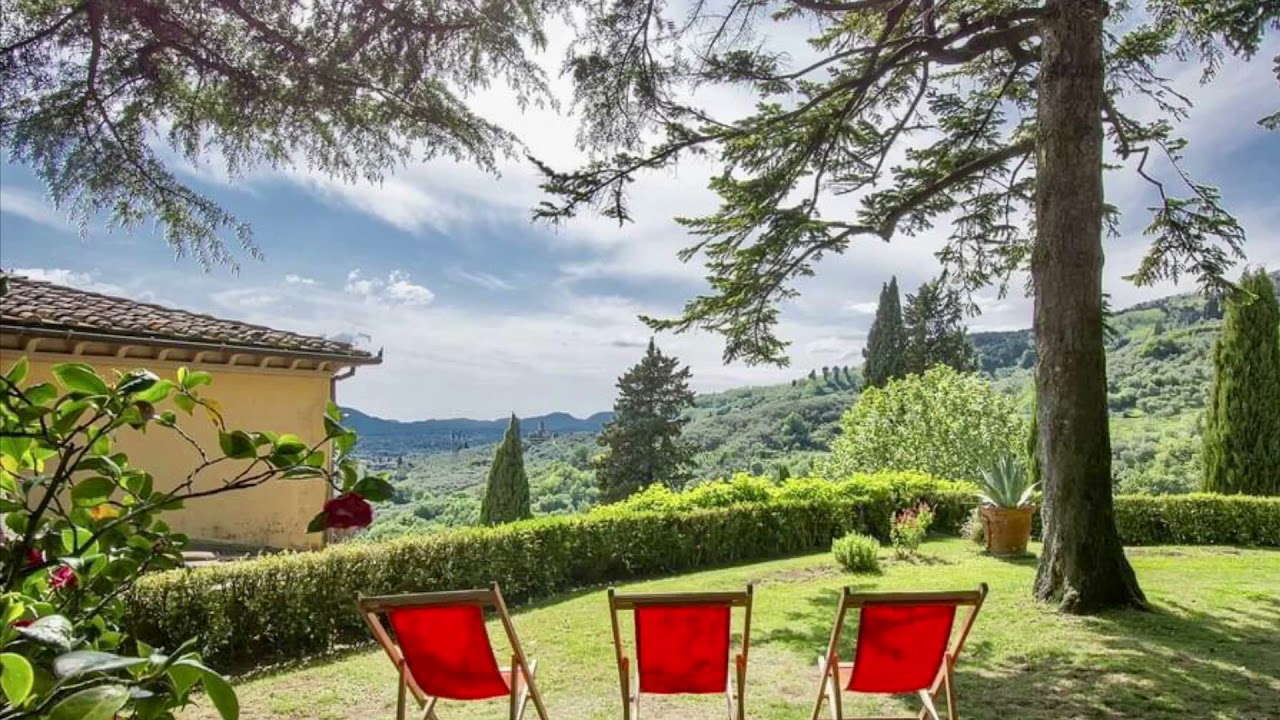 18th Century Country Villa, free on three sides, located in the quiet Tuscan hill-top village of San Gennaro, among historic homes on cobblestone streets. Though secluded behind stone walls, from its elevated position one enjoys sweeping views of the surrounding olive groves, vineyards and far beyond.