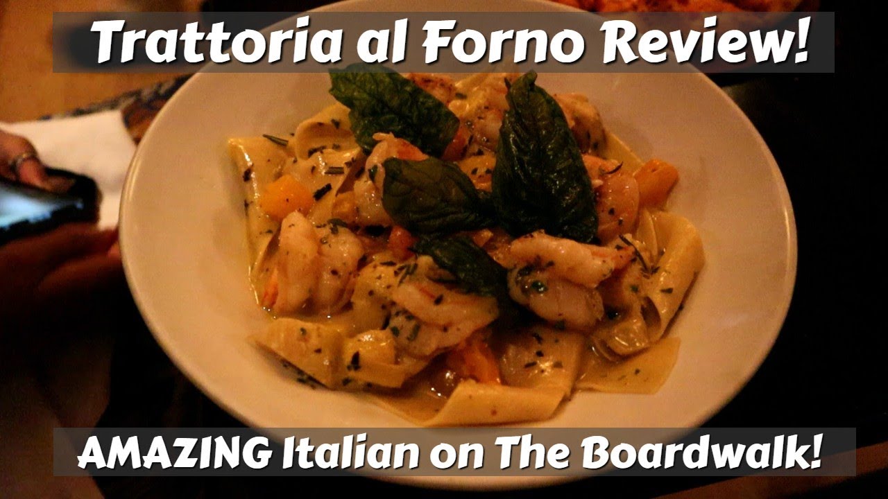 Trattoria al Forno is a popular Italian restaurant on Disney’s beautiful Boardwalk Resort! We had heard so many good things about this place and they recently upgraded their menu. So, we decided to review the place! What a magnificent meal we had here! The Shrimp pappardelle was the BEST pasta we have had on Disney property and the apps/pizza we’re both great as well. We highly suggest checking this place on your next trip! In the meantime, come and check out some of our other great Disney Dining Reviews!