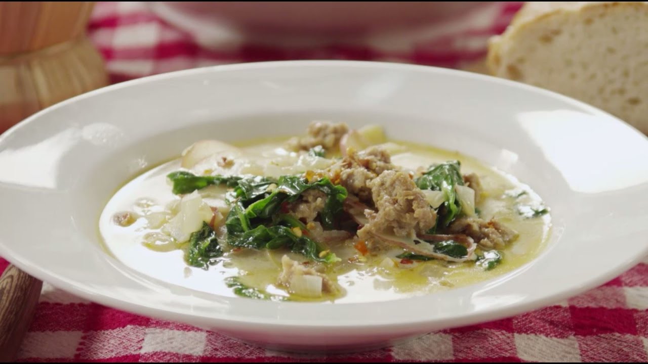 In this video you’ll learn how to make soul-warming zuppa Toscana. Italian sausage, bacon, potatoes, crushed red pepper flakes, chicken broth and cream combine in this irresistible restaurant-style soup. Add some fresh spinach or kale at the end and it’s a complete meal! This comforting soup will warm you down to the toes.