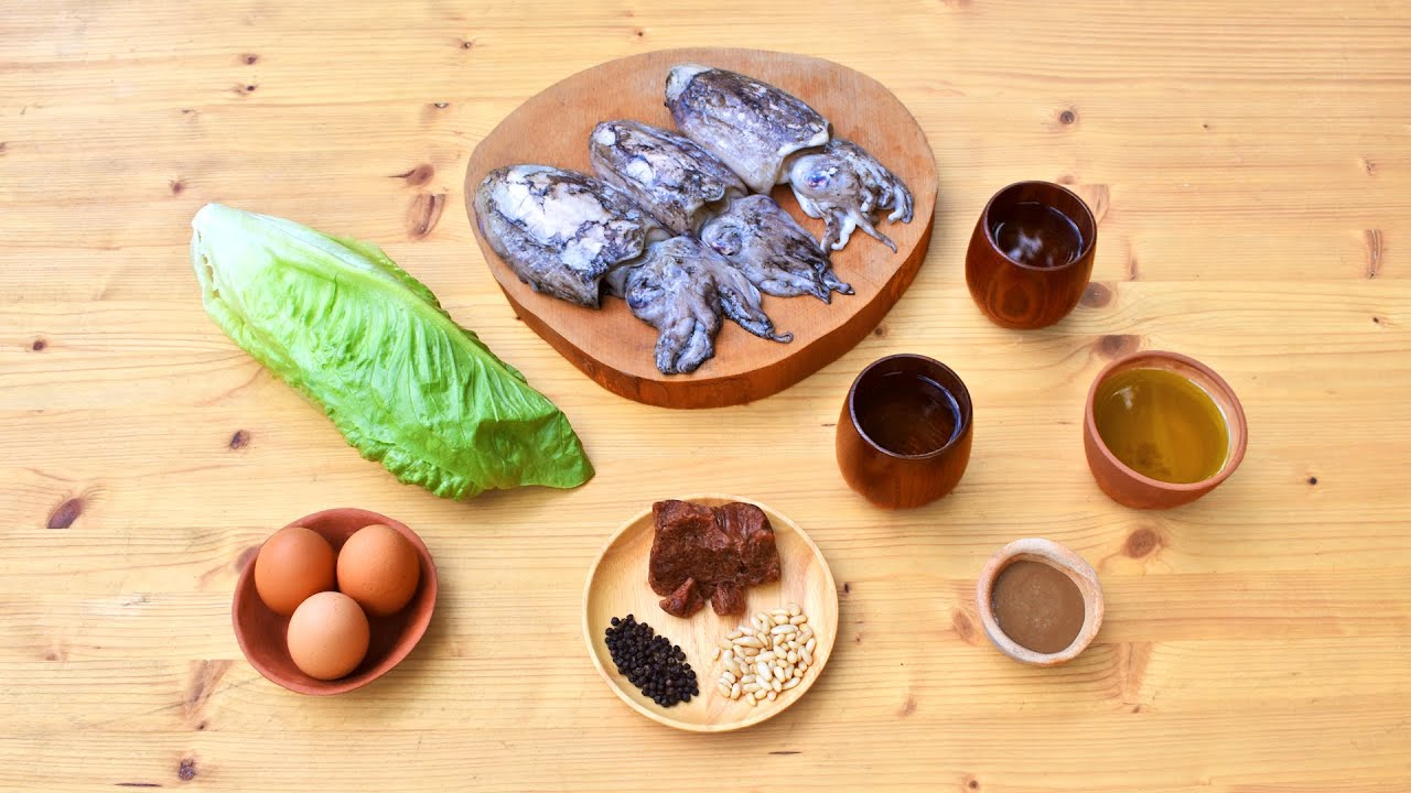 Today we prepare a perfect dish for summer, ancient Roman cuttlefish with eggs from the 9th book of De Re Coquinaria, pairing it with a simple lettuce salad described by the Greek physician Galen in his De Facultatibus Alimentorum.