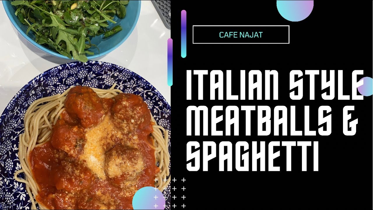 🥗To serve, start in pasta bowl with spaghetti & ladle 4-6 meatballs per person with sauce – top with parmesan. Also add side rocket salad with rocket leaves, pine nuts, parmesan, s&p, EV olive oil & balsamic vinegar.