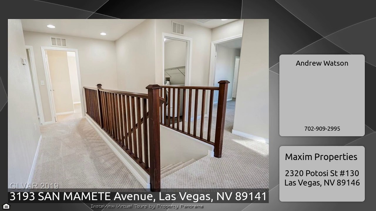 The Virtual Tour for the property at 3193 SAN MAMETE Avenue, Las Vegas, NV 89141 listed for $329,900: Other homes for sale by Andrew Watson of Maxim Properties: BEAUTIFULLY REMODELED 4 BEDROOM HOME WITH EXTENSIVE UPGRADES THROUGHOUT!!!ALL NEW designer selected carpet, ALL NEW interior paint, STUNNING granite counters, HIGH END kitchen appliances, UPGRADED light fixtures, GORGEOUS tile downstairs, THE LIST GOES ON!!! BIG backyard with ALL NEW rock and paver patio area!!! IDEALLY situated in the Southwest near schools, shopping, dining, parks AND MORE!!! THIS HOME WON'T LAST!!!