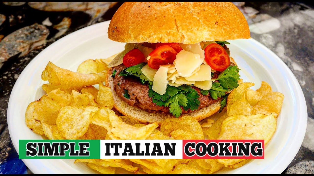 How to cook a homemade beef burger with fresh coriander leaves, cherry tomatoes & Parmigiano Reggiano – tricolore style celebrating the victory of Italy in the EURO 2020 final.