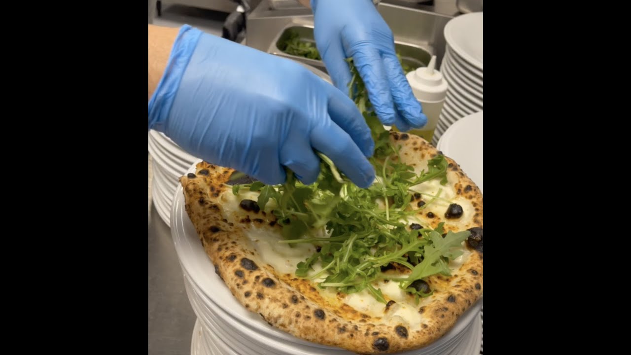 Our delicious “Doppio Zero Pizza” from our San Francisco location. The pizza includes Burrata Cheese, 24 Months Prosciutto di Parma, Arugula, Shaved Parmigiano Reggiano, E.V.O.