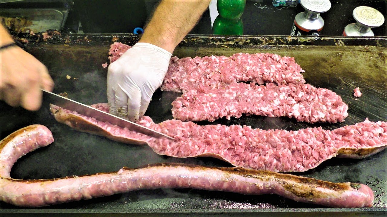 The stigghiola is a Sicilian food specialty, typical of the streets of the city of Palermo. It consists of guts (usually of lamb, but also of goat or chicken) which are washed in water and salt, seasoned with parsley and often with onion and other pot herbs, then stuck on a skewer or rolled around a leek, and finally cooked directly on the grill. The dish is generally prepared and sold as a street food.