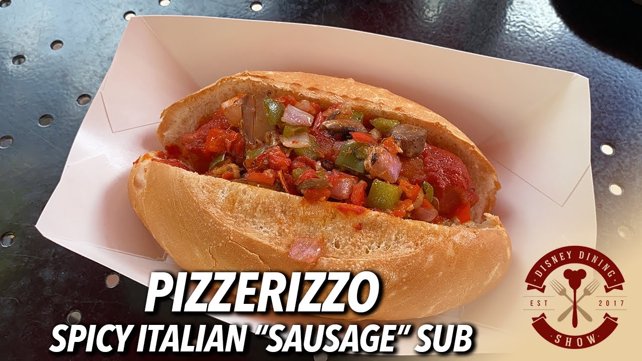 Let’s head back to PizzeRizzo at Disney’s Hollywood Studios, not for the pizza, but for the plant-based option here – the Spicy Italian “Sausage” Sub. Spoilers! It’s not really sausage.