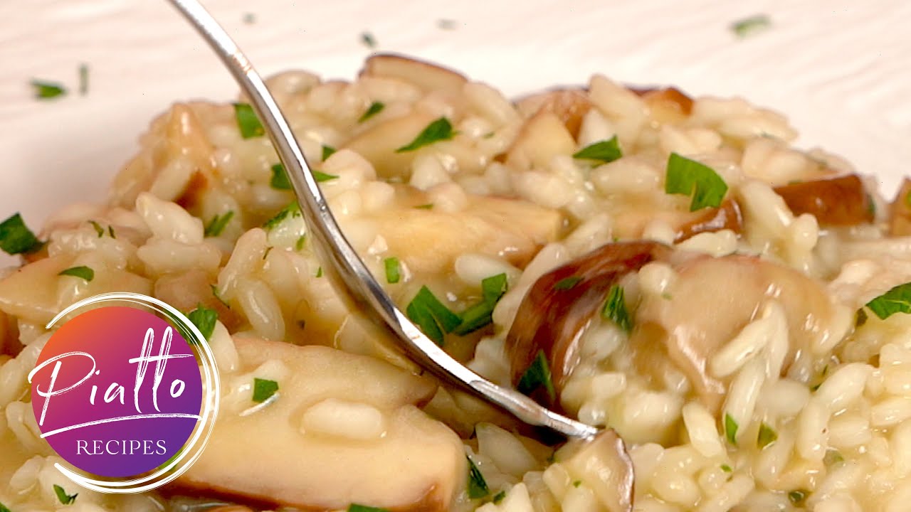 In this PIATTO™ Quick-Steps Video, learn how to make risotto in just 4 easy steps! This Mushroom Risotto recipe is easy, vegetarian and can be made with any mushroom or mix of mushrooms that you like. Great mushrooms for this mushroom risotto recipe include: button or crimini (champignon), chanterelle, portobello, and porcini.