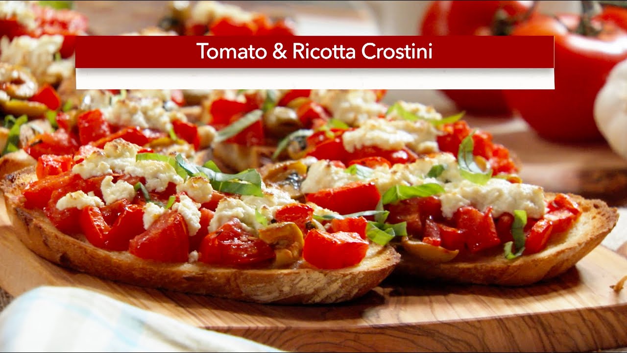 I cannot get enough of tomatoes during the summer, and these rustic, crunchy, toasted bruschette with juicy tomatoes and ricotta work well as an appetizer or even a light lunch. You can prepare them all in advance and pop them in the oven when your guests arrive. Watch me make them here – and find the full recipe here –