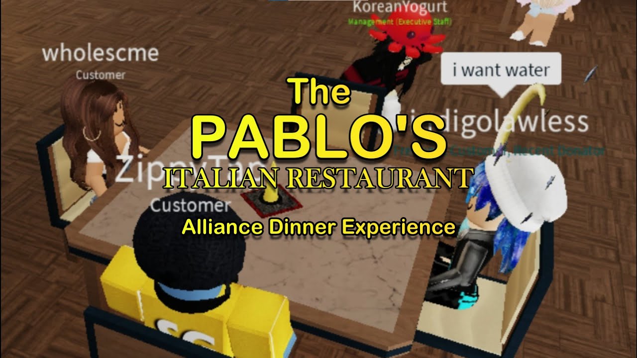 Hello there, welcome or welcome back to Subatomic Gaming! Today, we’ll be going to the one and only Pablo’s Italian Restaurant, a pretty good (and interesting) Italian Restaurant on Roblox! Unfortunately, a majority of the time, it is a bit dead, but luckily, there is an alliance dinner going on and I recorded how it was there, watch to find out today’s experience!